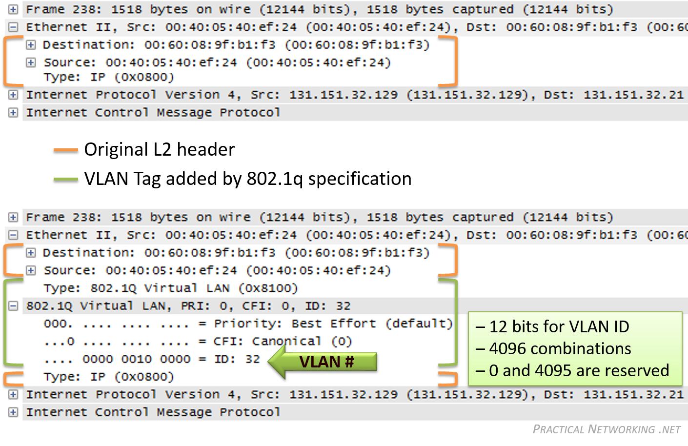 Frame entra al trunk → SE AÑADE etiqueta 802.1Q con VLAN ID